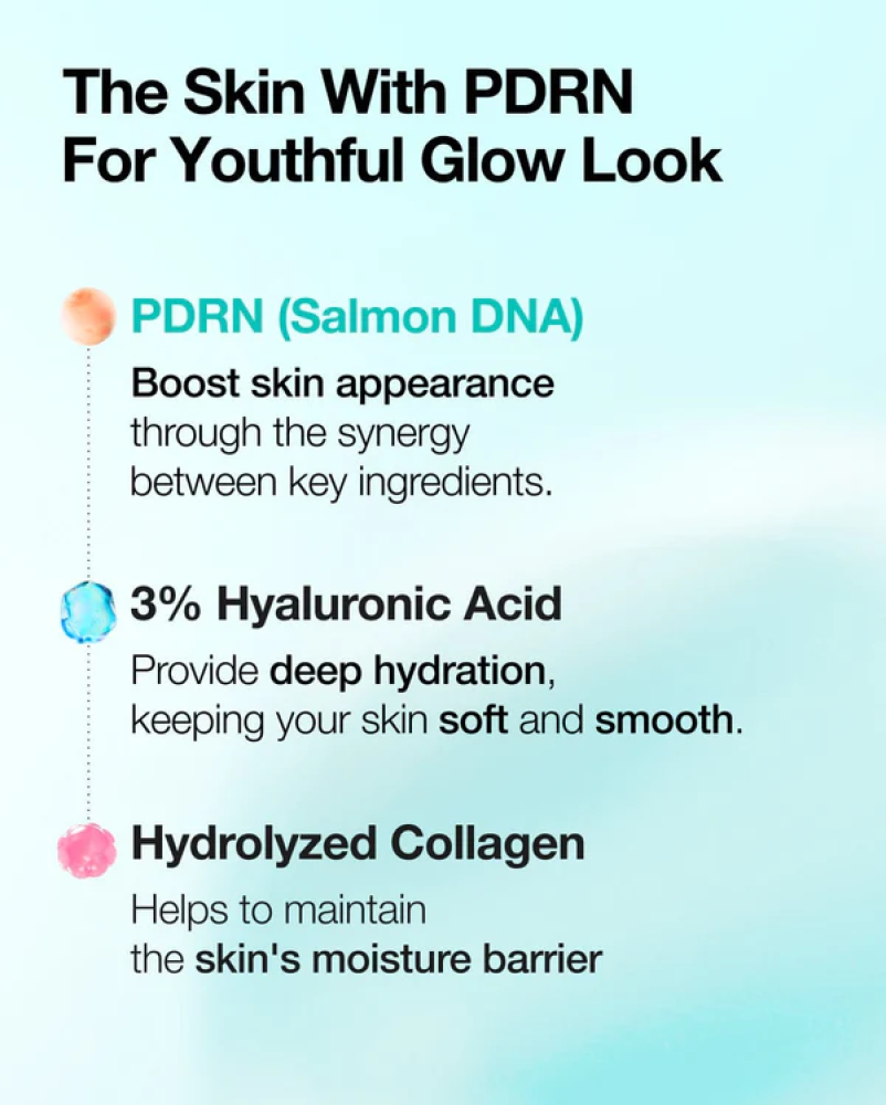 - مدعوم بـ100ppm من PDRN وتقنية الكبسولة الذكية للحصول على بشرة ناعمة ومنتعشة.