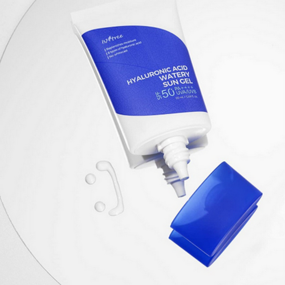 جل واقي شمس جل مائي بحمض الهيالورونيك يحمي البشرة من الأشعة فوق البنفسجية دون أن يترك طبقة بيضاء.