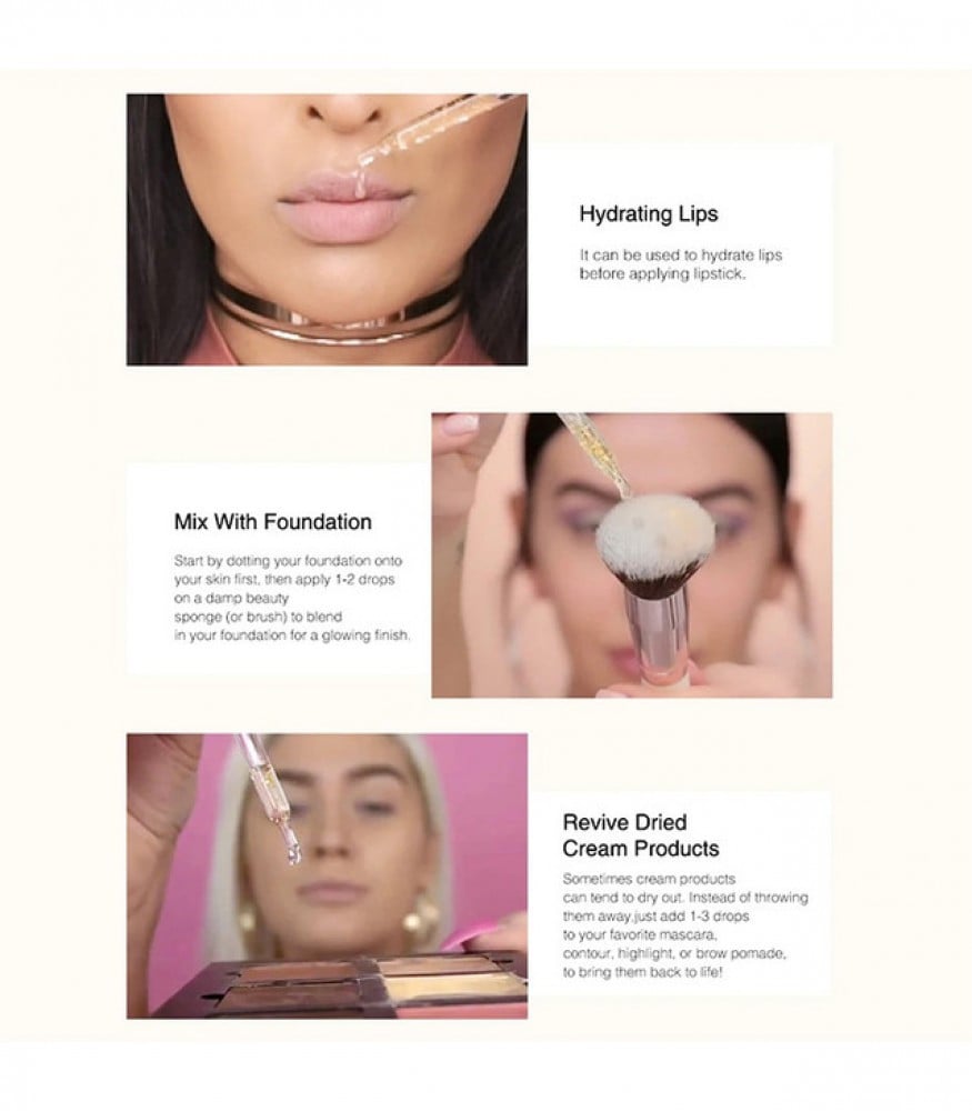 زيت قطرة الذهب من اوتو يمتاز بتركيبته اللطيفة على البشرة والتي تحتوي على مواد مضادة للأكسدة وعلامات الشيخوخة كما انه يتحكم في الزيوت الأساسية للبشرة حتى يدوم المكياج لفترة أطول تخفي اللون الداكن تحت العينين والاحمرار وعيوب البشرة.