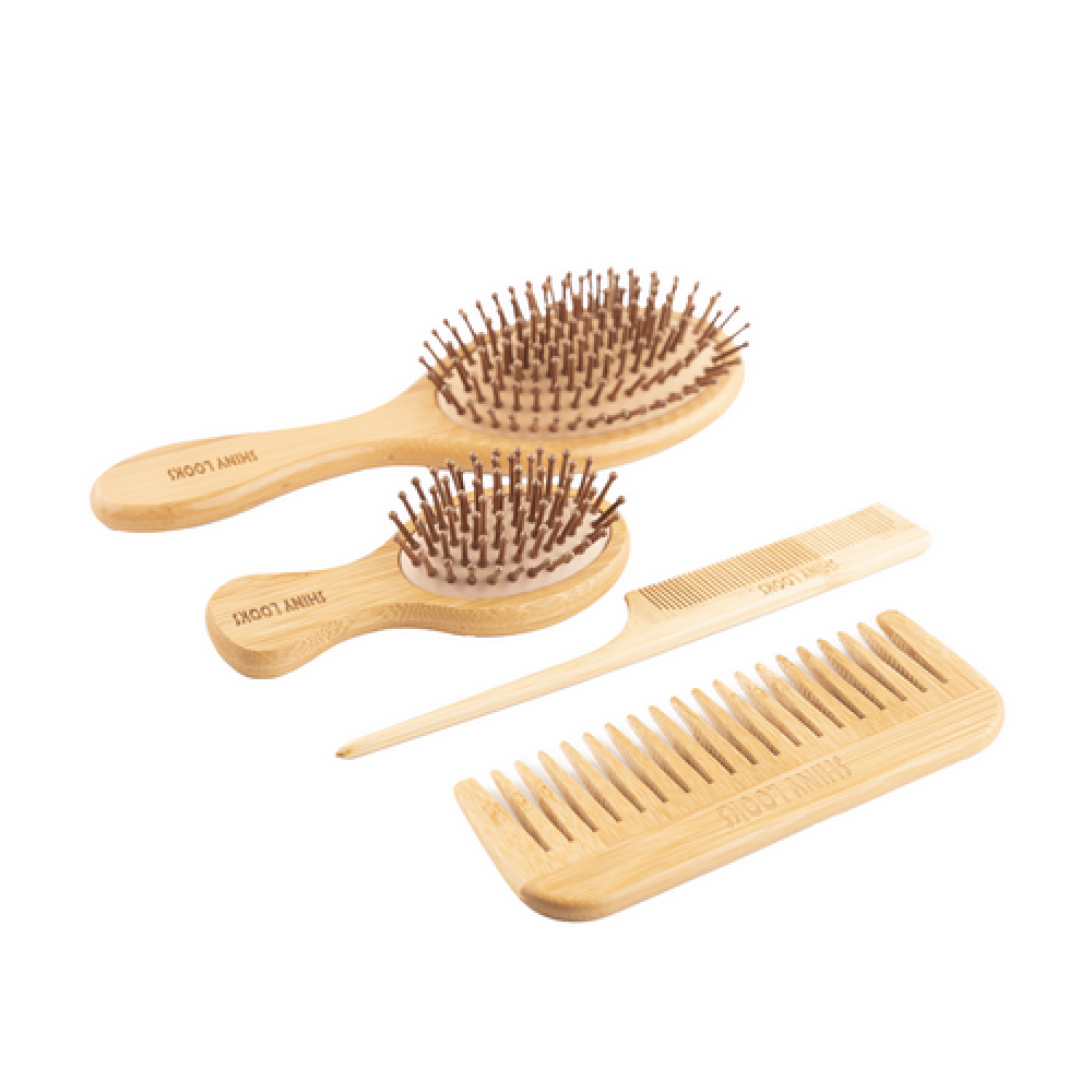 شاينى لوكس مجموعة فرش وأمشاط الشعر من خشب البامبو