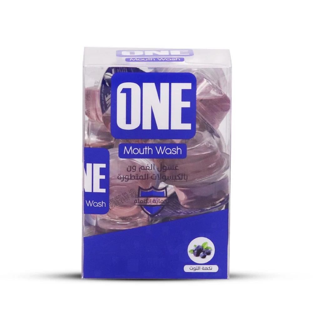 غسول الفم بالكبسولات المتطورة نكهة التوت من ون هو منتج مبتكر للعناية بصحة الفم.