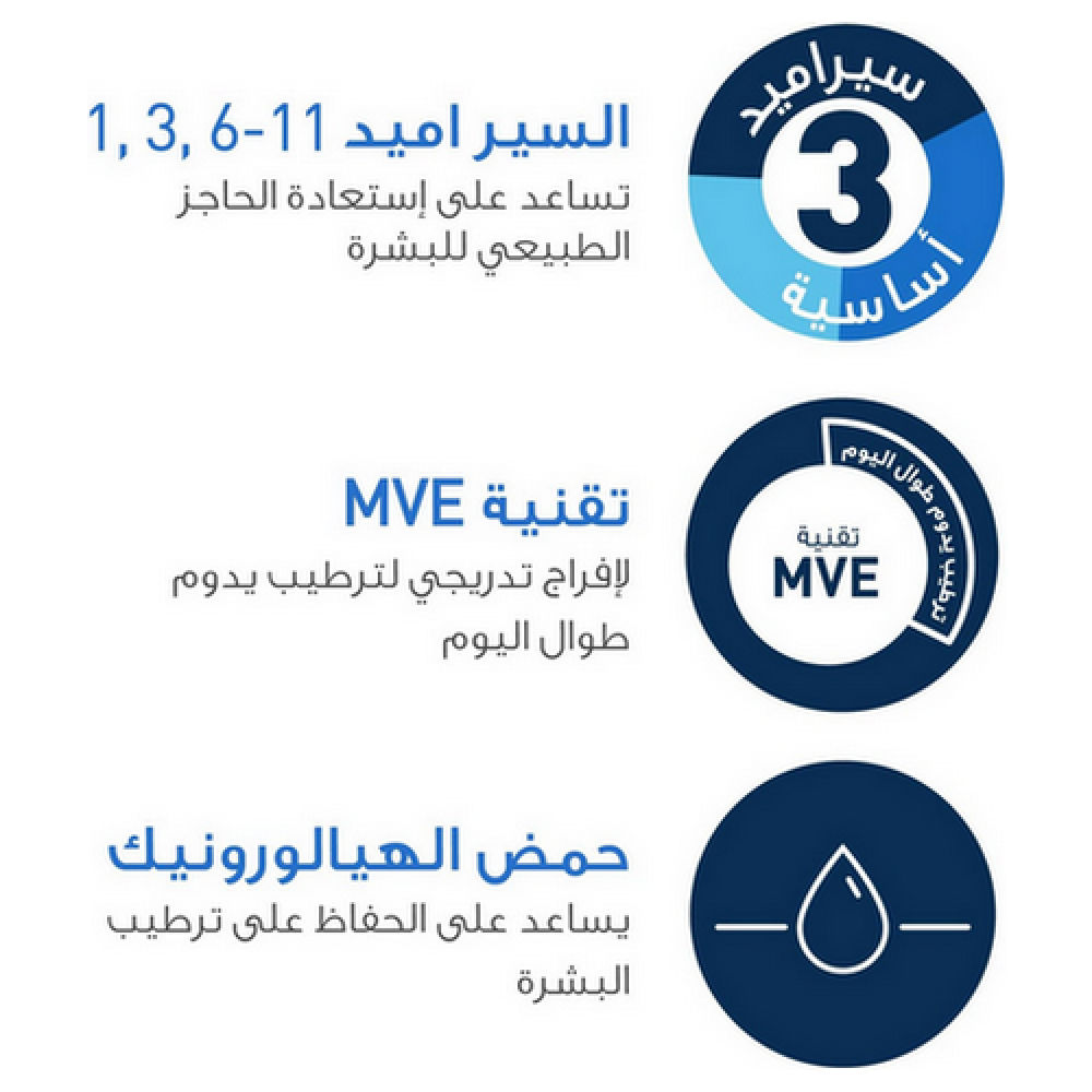 • يحتوي على ثلاثة سيراميدات أساسية وحمض الهيالورونيك ليرطب البشرة ترطيبا عميقا ويرمم حاجز حمايتها.