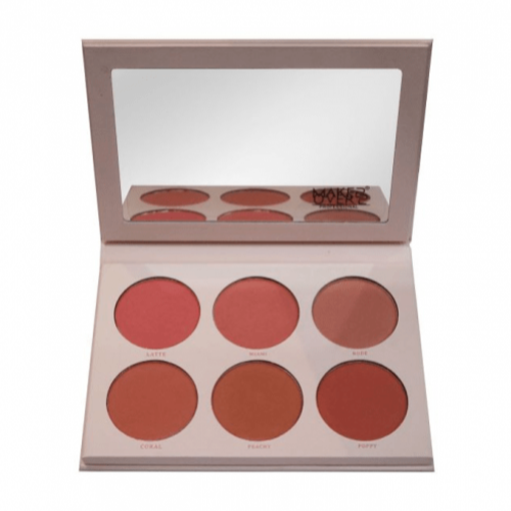 _ باليت مكون من 6 ألوان لامعه ومطفيه._ تستخدم الدرجات الورديه كحمرة خدود_ تستخدم الدرجات البنيه ككنتور لابراز معالم الخد ليمنحك مظهر طبيعي