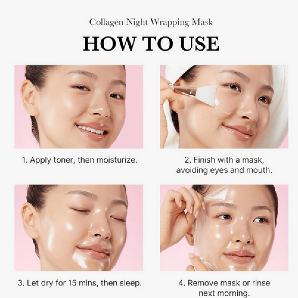 - انزعي طبقة الحماية بالكولاجين واغسلي وجهك بلطف عند الاستيقاظ