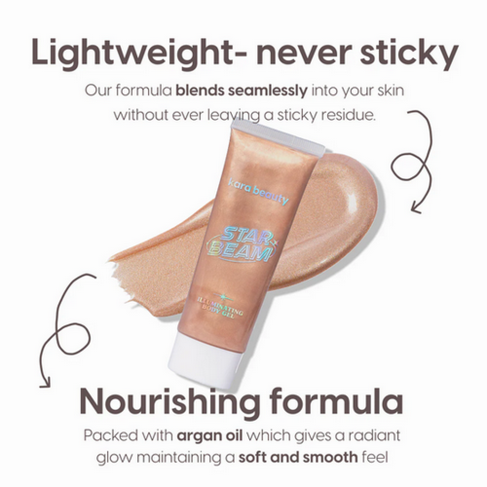 احصلي على توهج مشرق وجذاب مع إضاءة الجسم السائلة من كارا بيوتي.