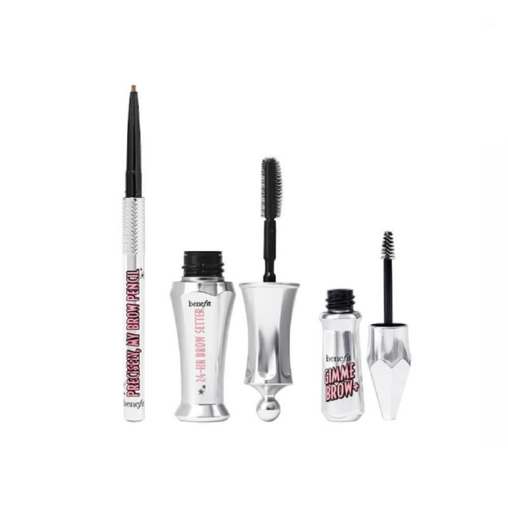 حددي حواجبك وكثّفيها وثبتيها باستخدام 3 من منتجات الحواجب المفضلة لدى Benefit بأحجام مناسبة للتنقل.