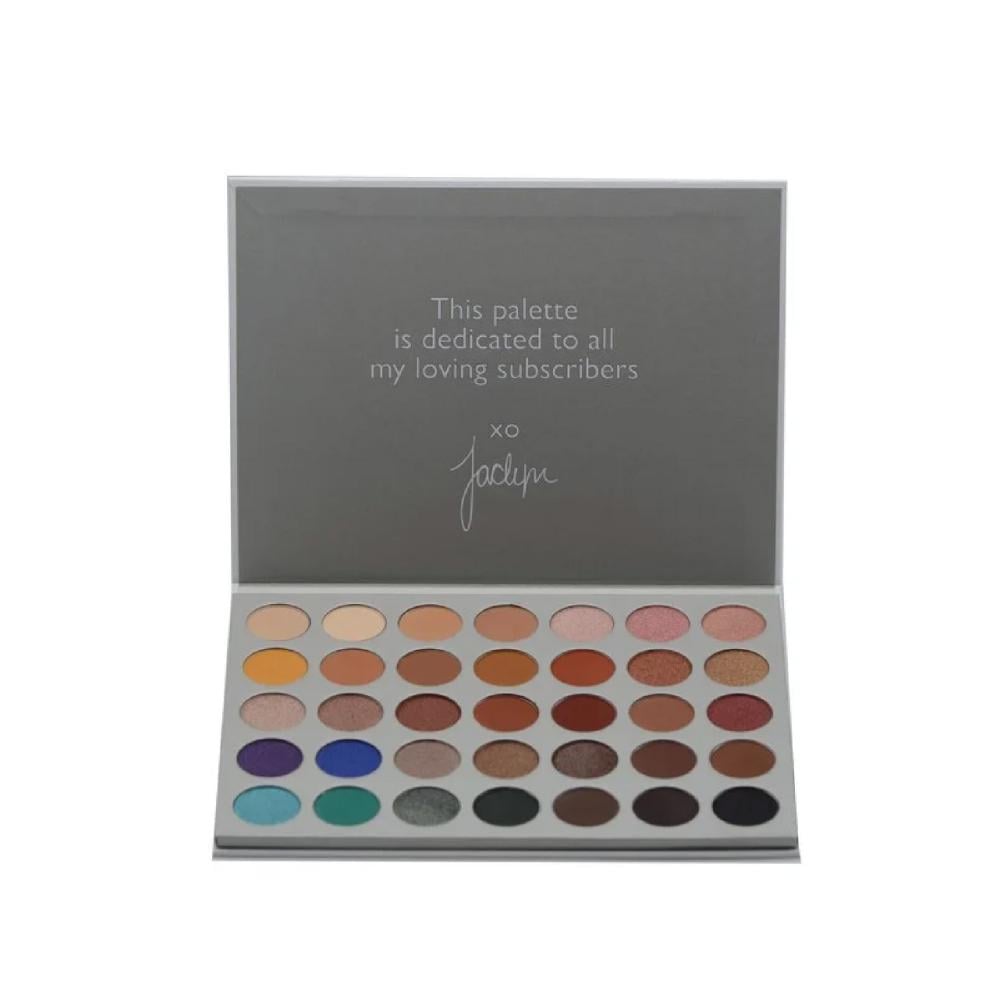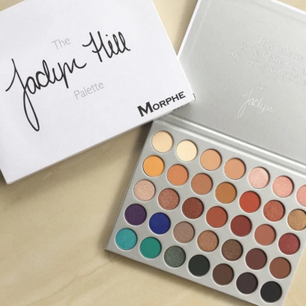 Morphe 's Jaclyn Hill Palette features 35 custom shades like Dark Brown and Sunset.